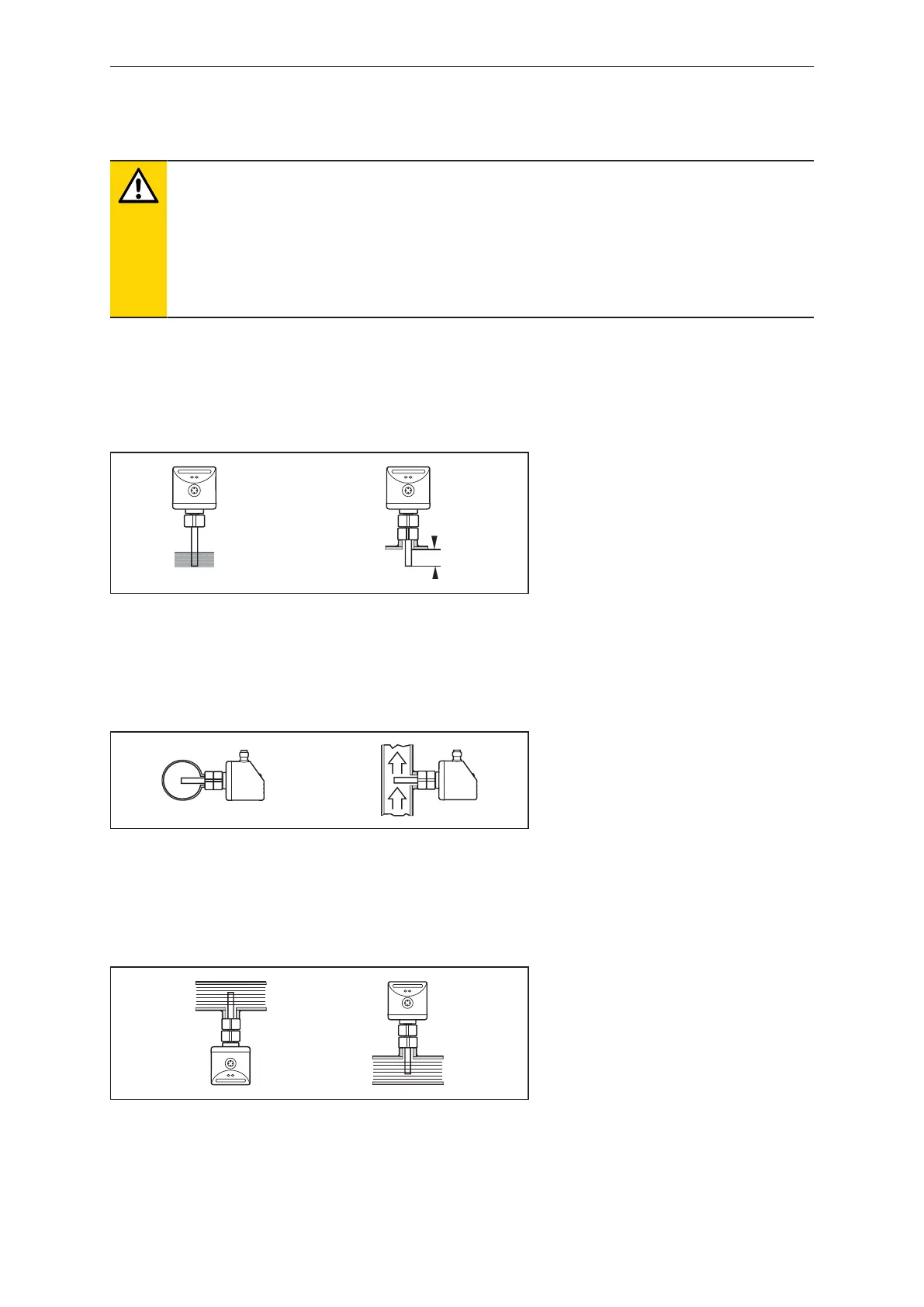 • For horizontal pipes, if the pipe is completely filled with medium: mounting from the top.