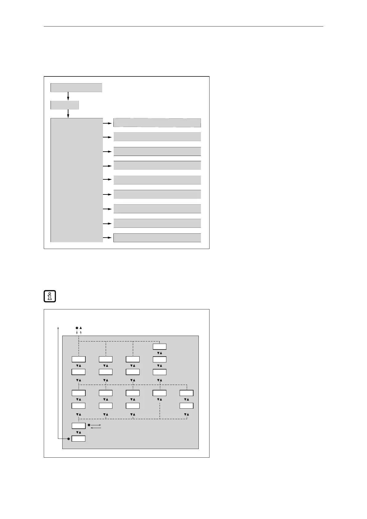 The figures in which the menus are displayed show the parameters that can be set on the unit by key