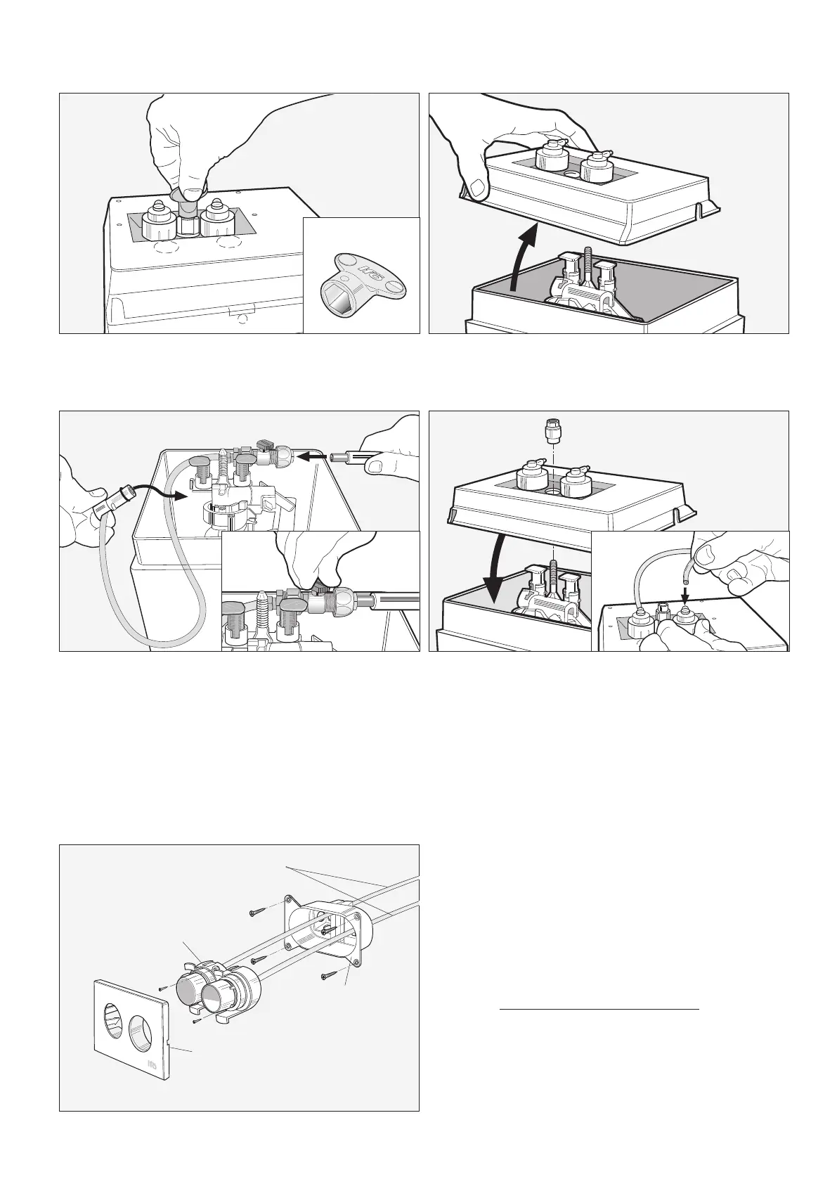 Skru knapsættet fast i vægdåsen og klem dækpladen fast