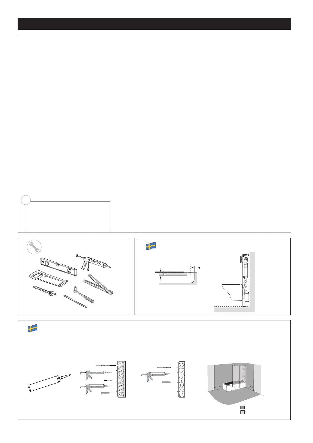 Alla infästningar i våtzon 1 och 2 ska tätas. Material för tätning ska fästa mot underlaget och vara vattenbeständigt, mögelre-