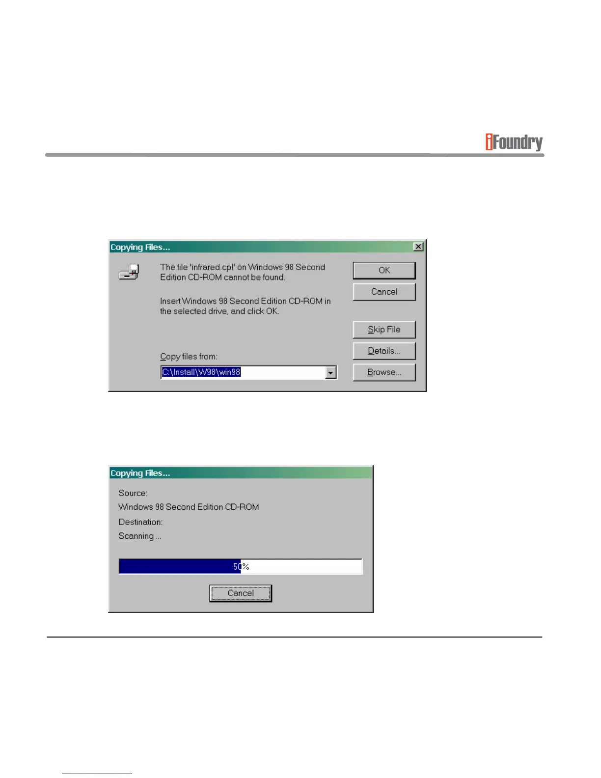 Note: The following screens may not appear for Windows ME installations.