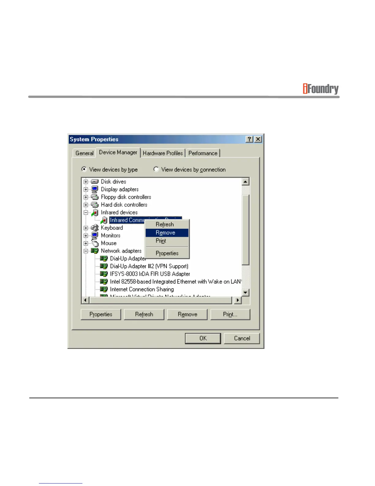 Right click on Infrared Communication Device, and click Remove.
