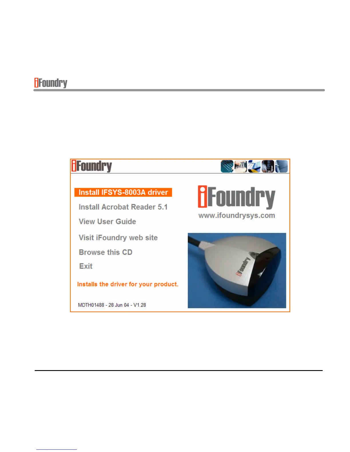 • click on Install IFSYS-8003A driver to install the adapter’s Windows driver, or