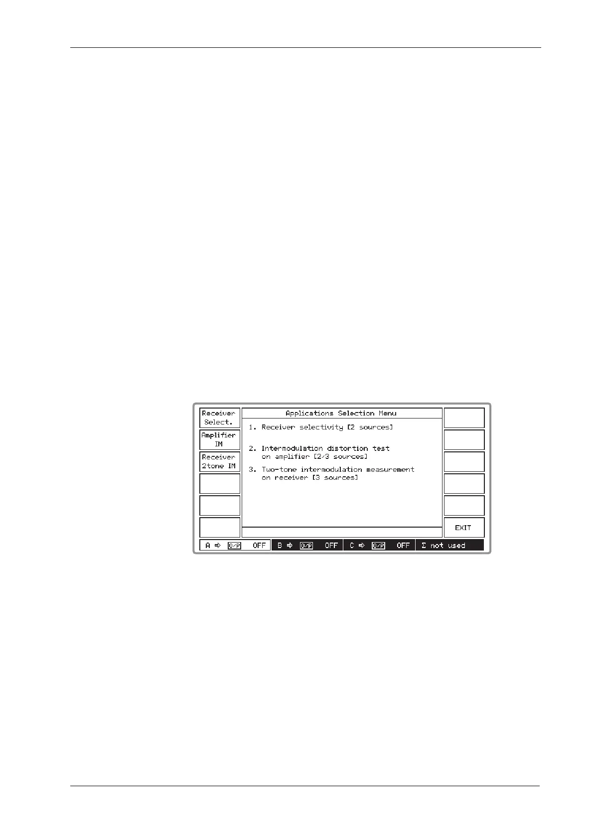 Note that when two sources are fitted the [Receiver 2tone IM] key does not appear so this test