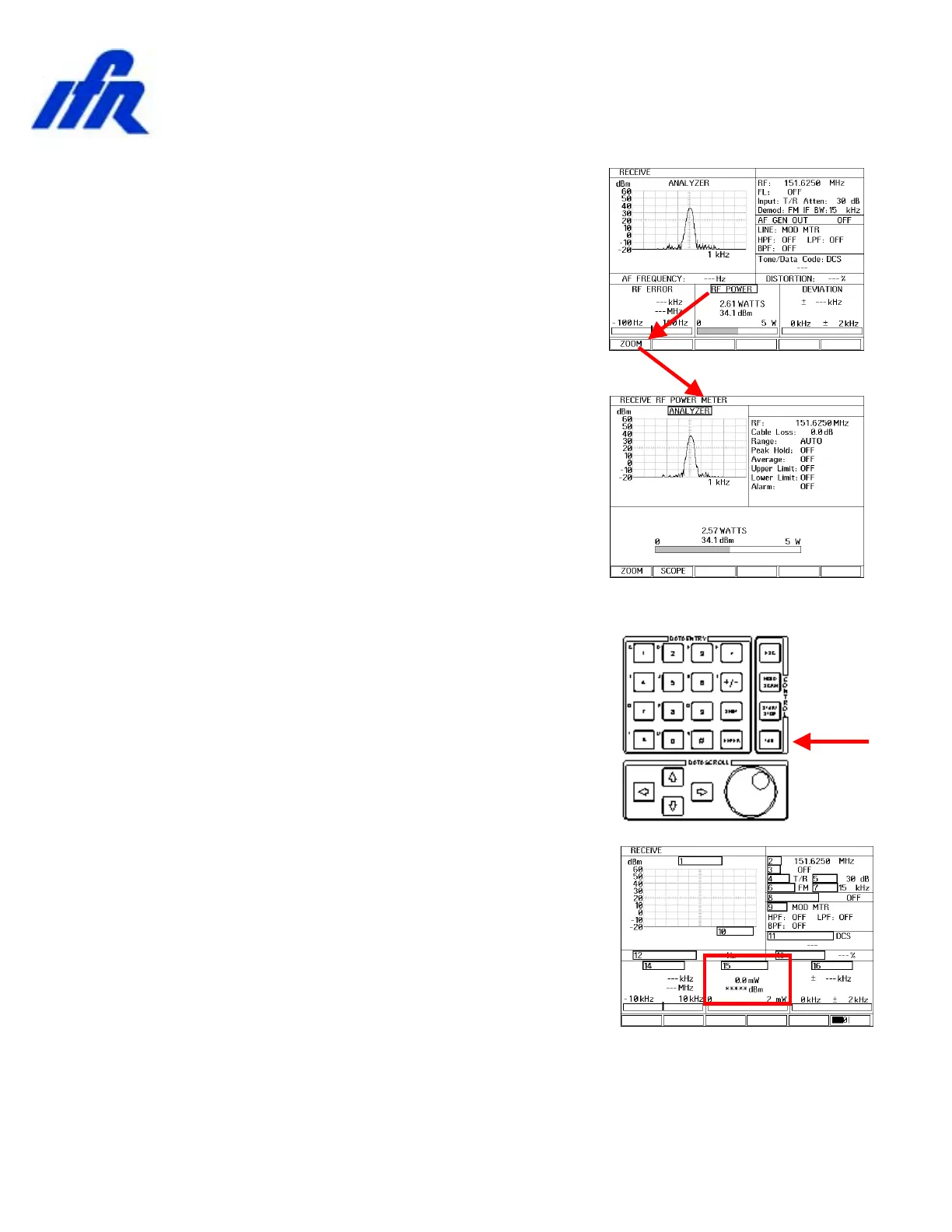 the RF Power meter field by pressing