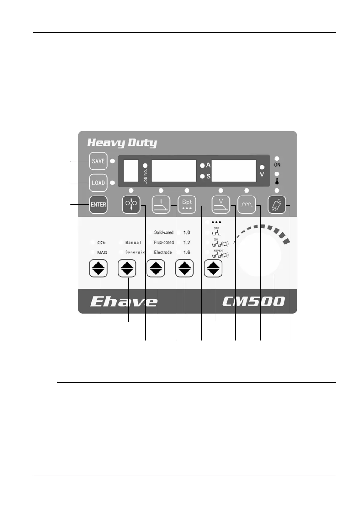 Figure 3-1 shows the front control panel of the welder and the buttons on the control panel.