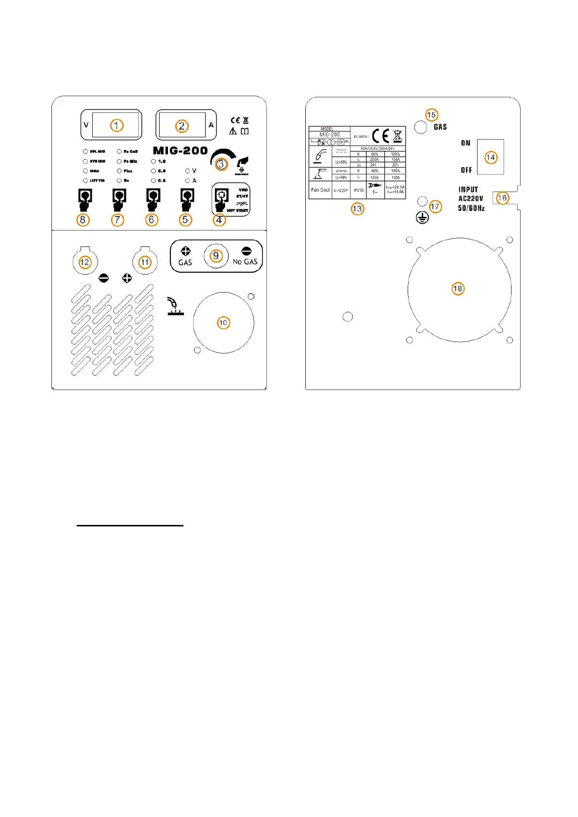 ○5 , welding voltage and current. ○6 , Welding Wire Diameter. ○7 ,