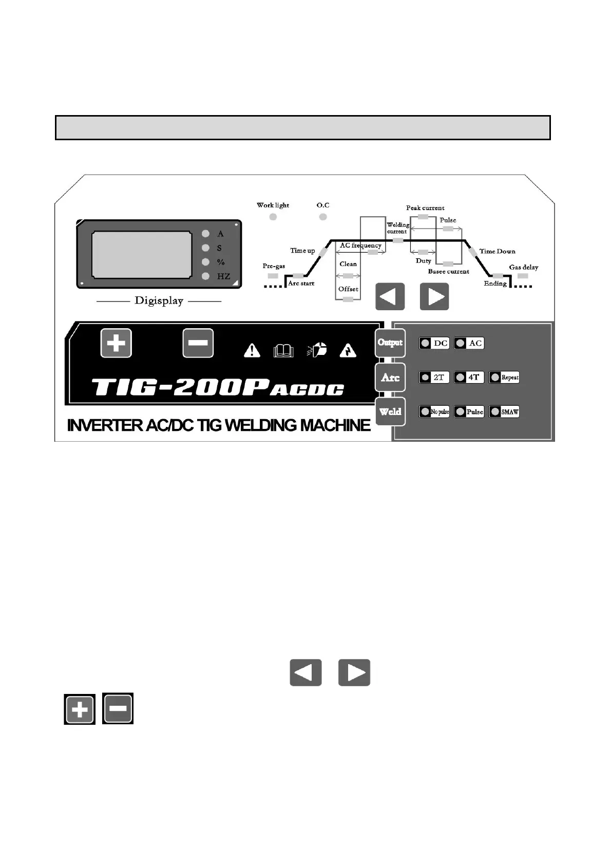 IGBT TIG-200 - Operation and Control; TIG AC;DC Control Panel Overview