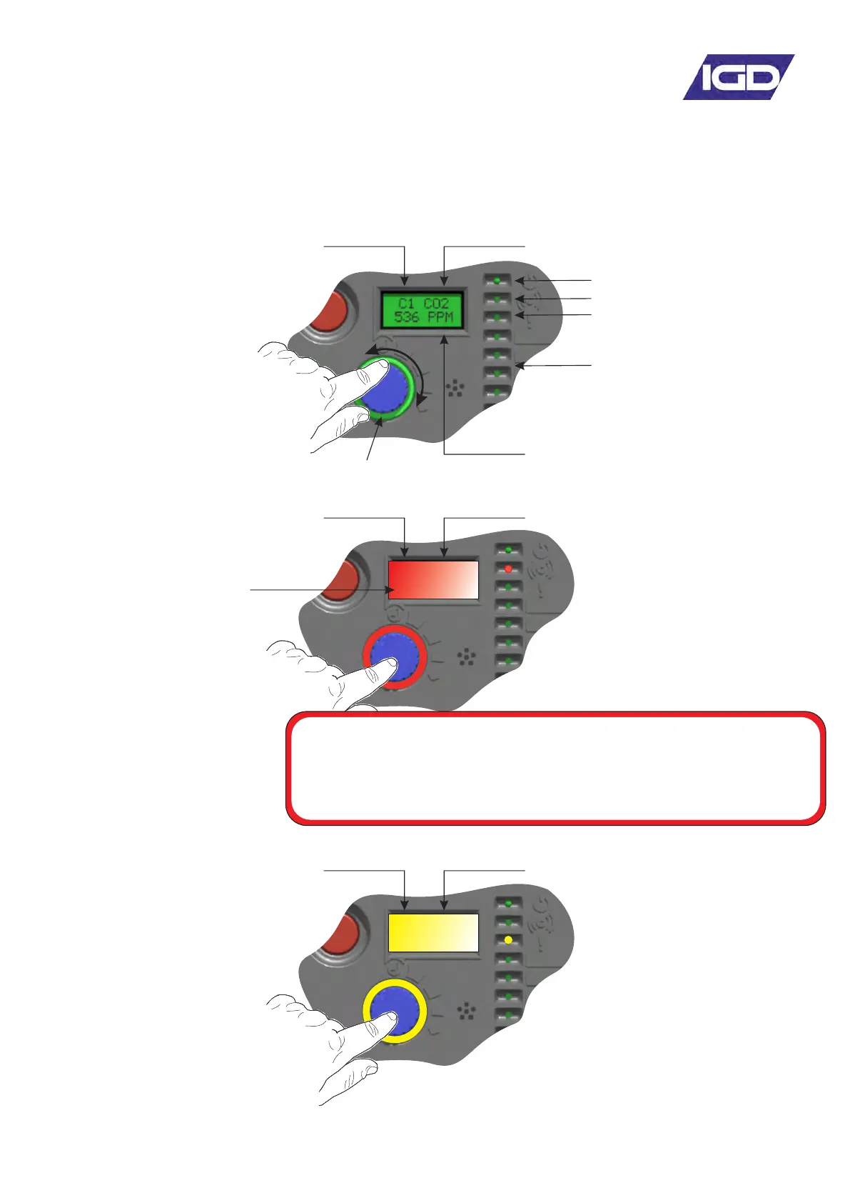 sensors and compare current values with any set alarm thresholds. The display will cycle to display