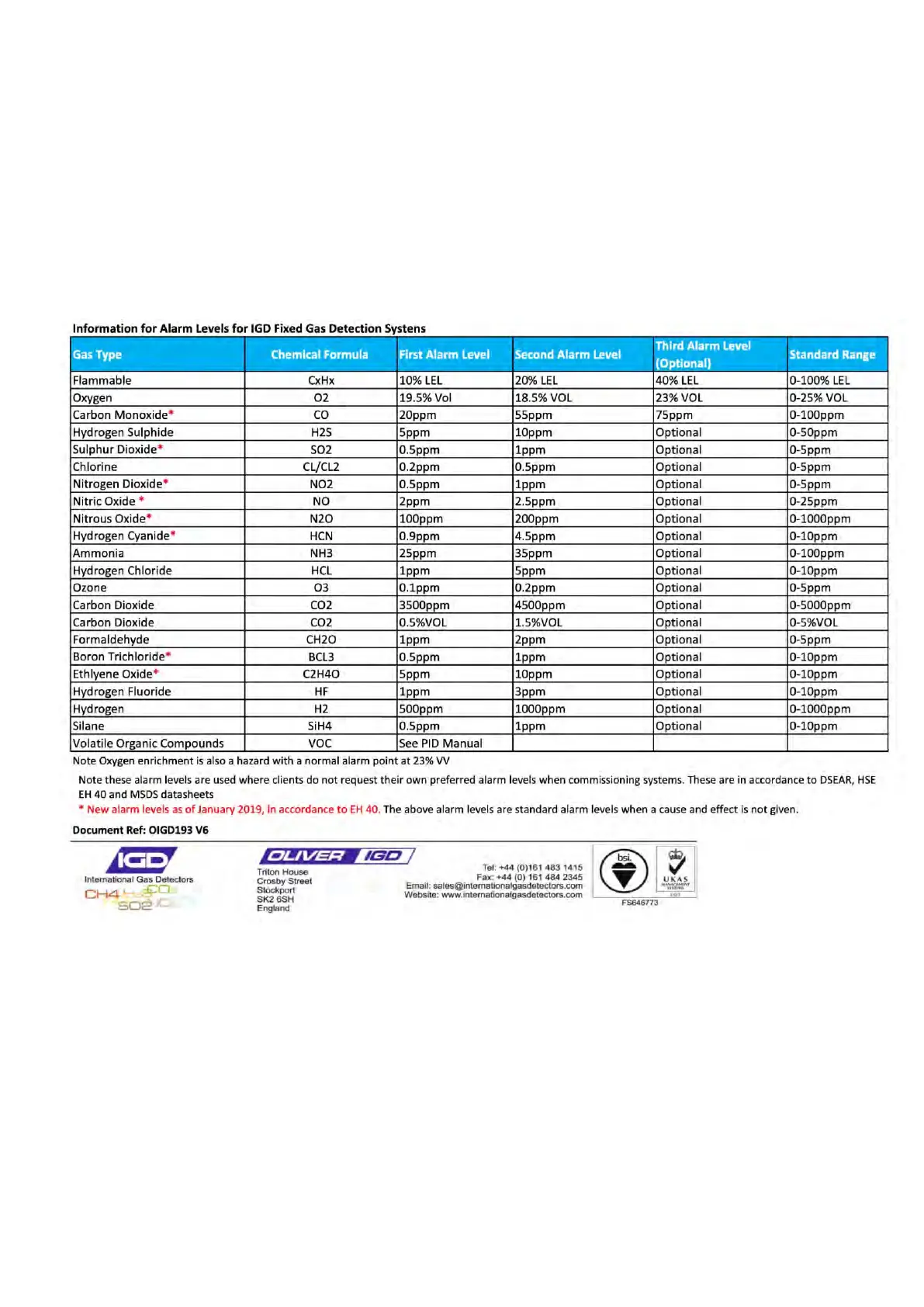 automatically sets alarm levels. The levels set are published in IGD document “OIGD193". Always refer to