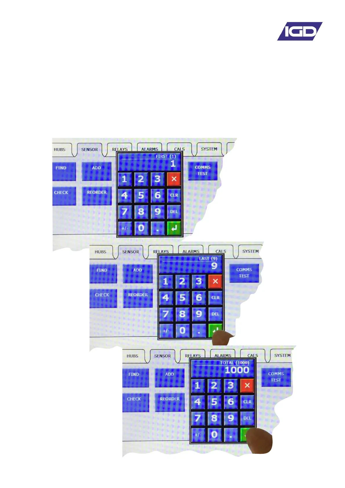 When sensor test is selected the following diagnostic screen is displayed.