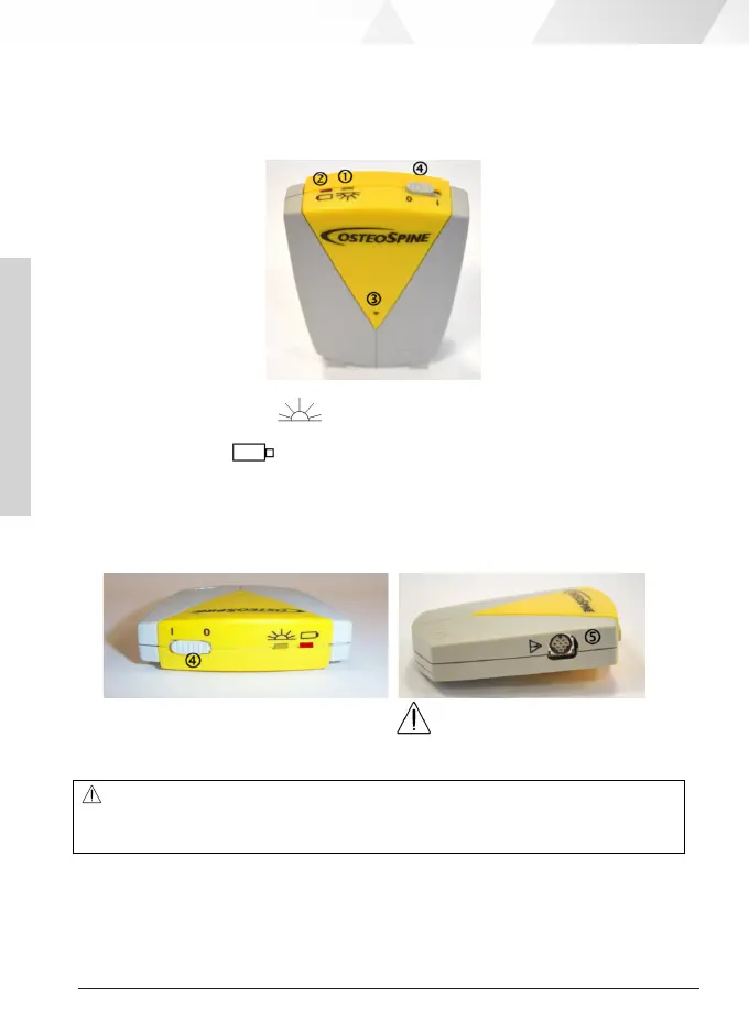 - A Sliding on/off switch positioned on the top part of the stimulator and marked with symbols