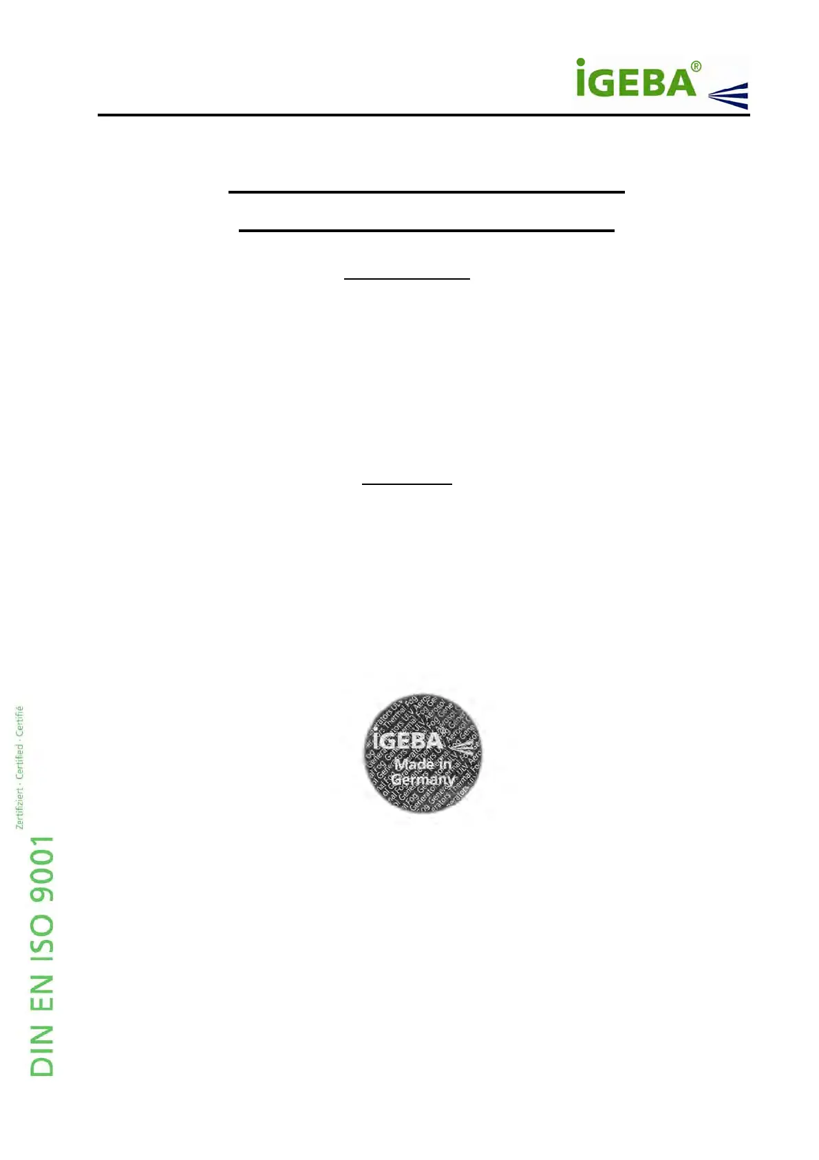 wir beglückwünschen Sie zum Kauf eines IGEBA-Qualitätsproduktes und wünschen Ihnen viel Erfolg bei der
