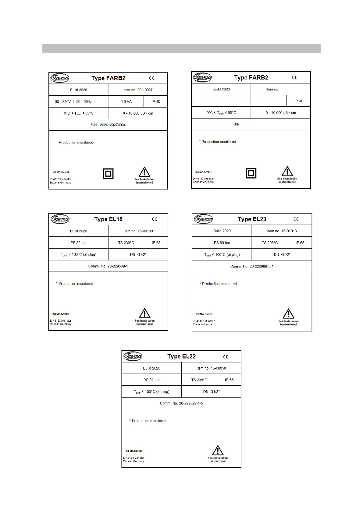 Igema FARB2 - Rating Plate