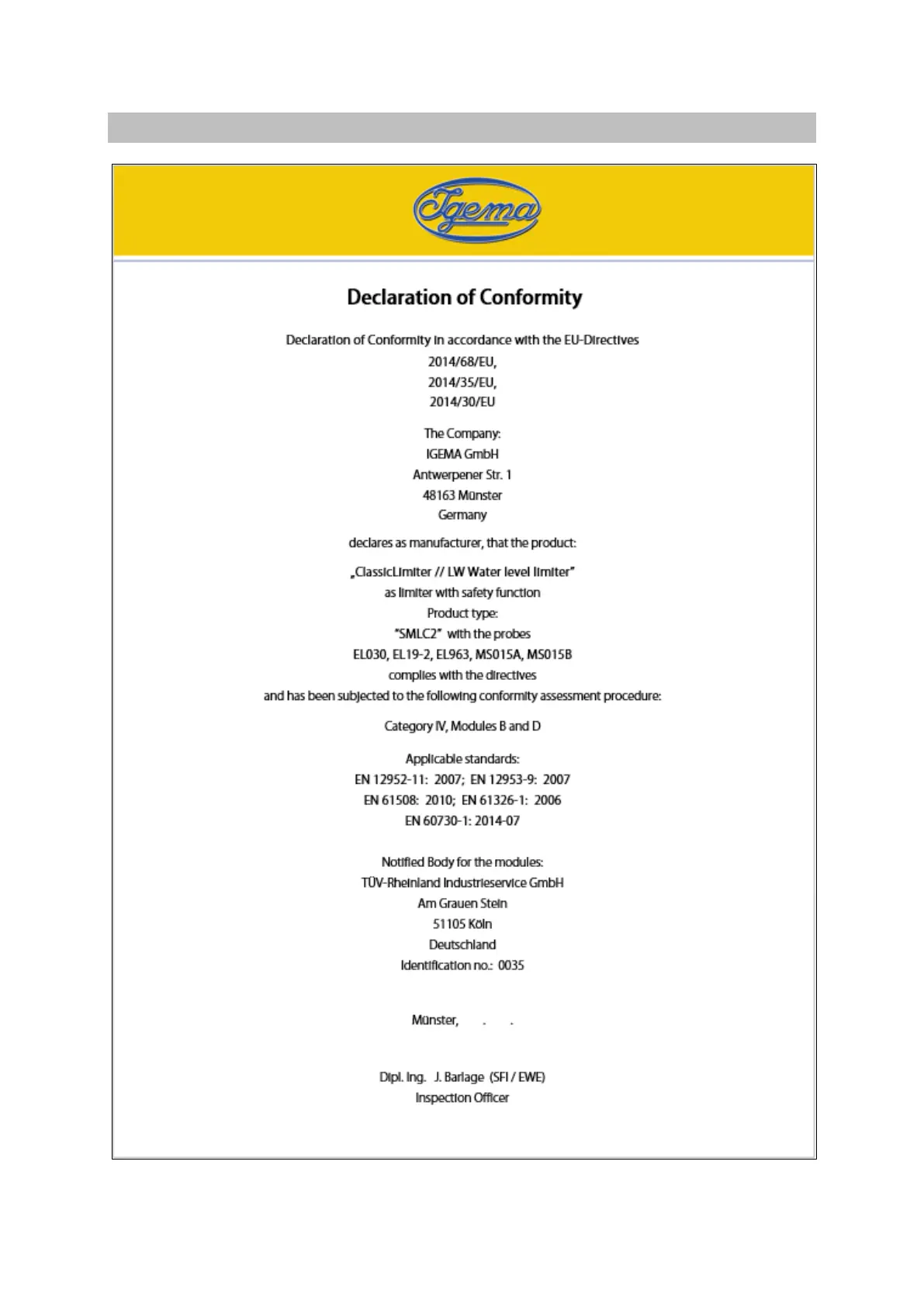 Igema SMLC2 - 10 Conformity Declaration