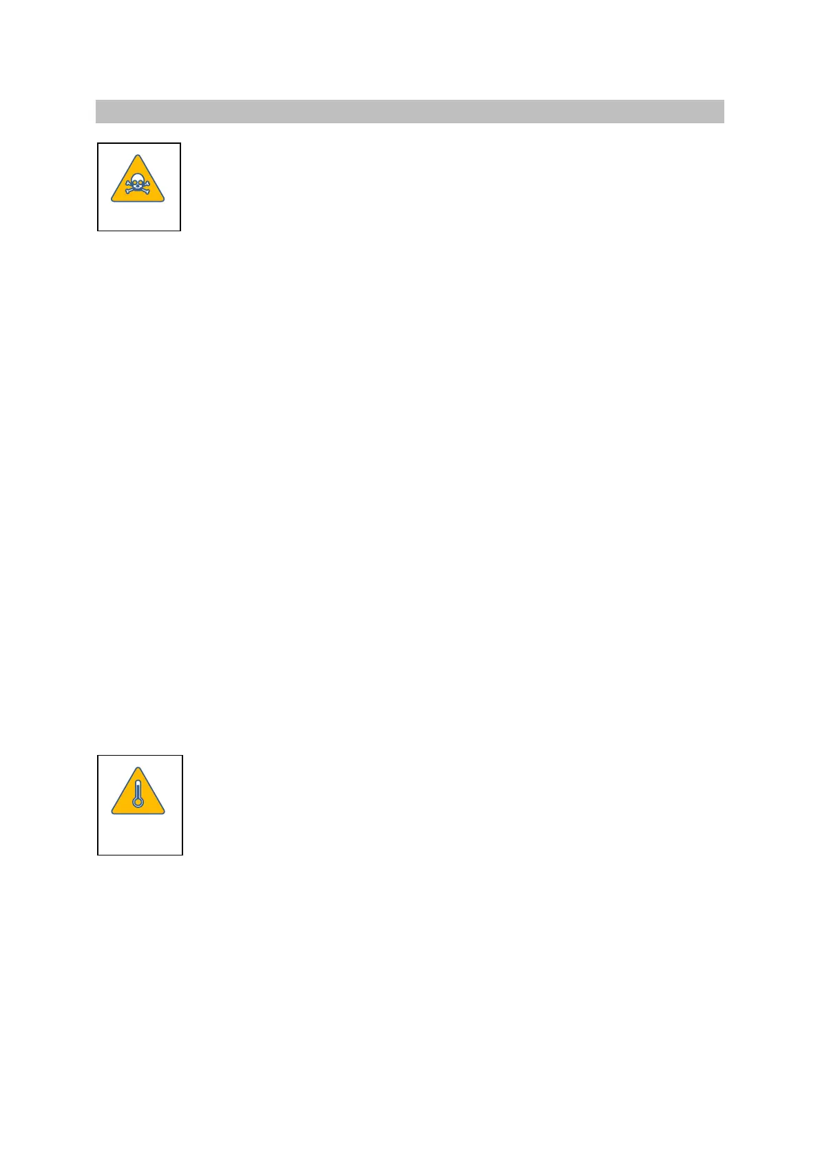 and pits, dangerous gases/liquids, extreme temperatures, hot surfaces, fire hazard (e.g. during