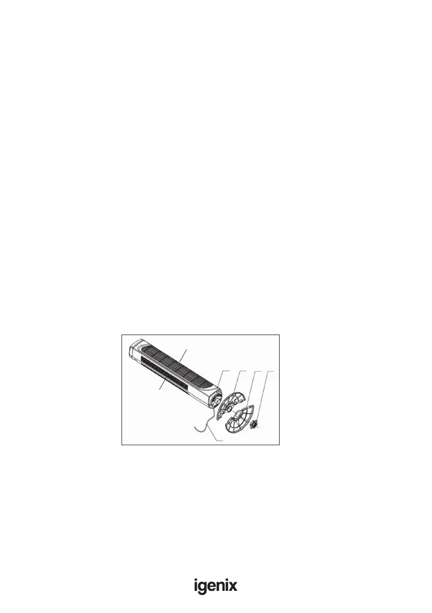 2. Place the Fan Body (2) horizontally on a at surface and remove the nut (5).