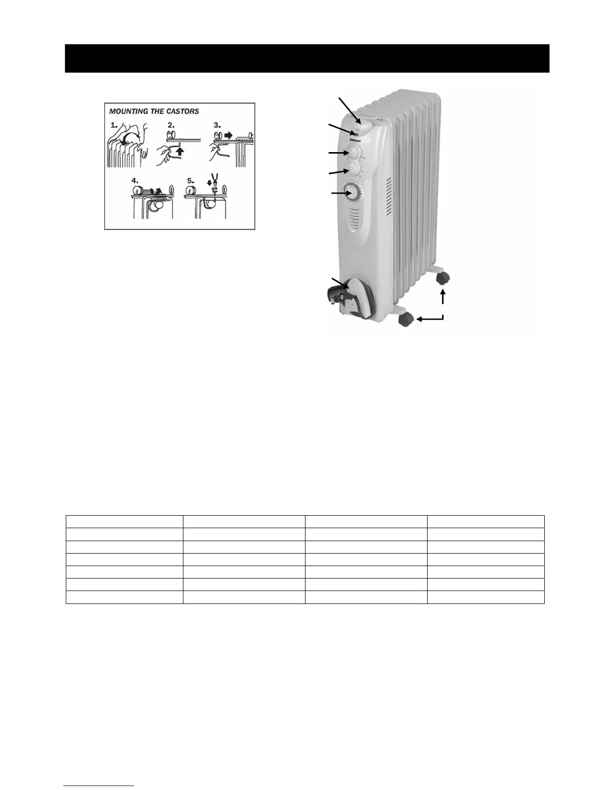 underneath a fixed power point and always ensure that the radiator is placed at least 50cm away from furniture, curtains, walls