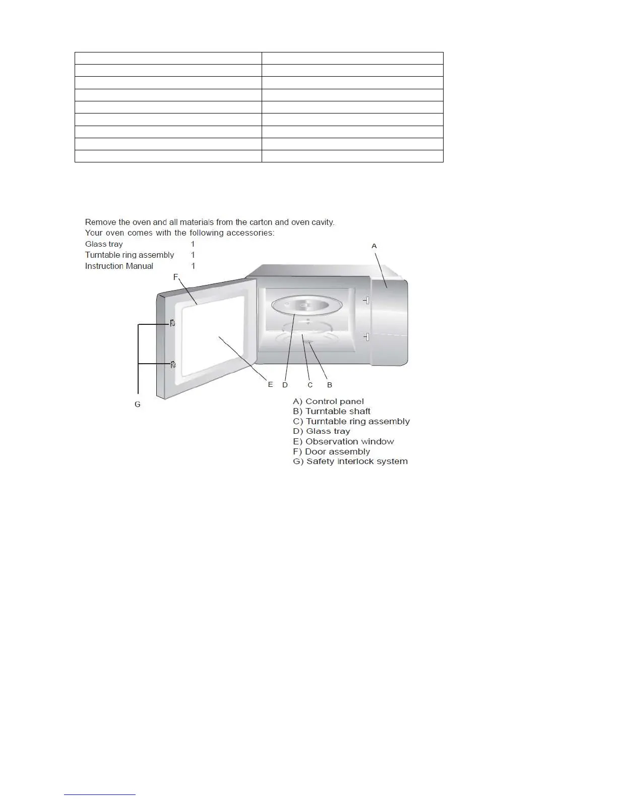 7. Do not operate the oven without glass tray, turntable ring, and shaft in their proper positions. Never place the