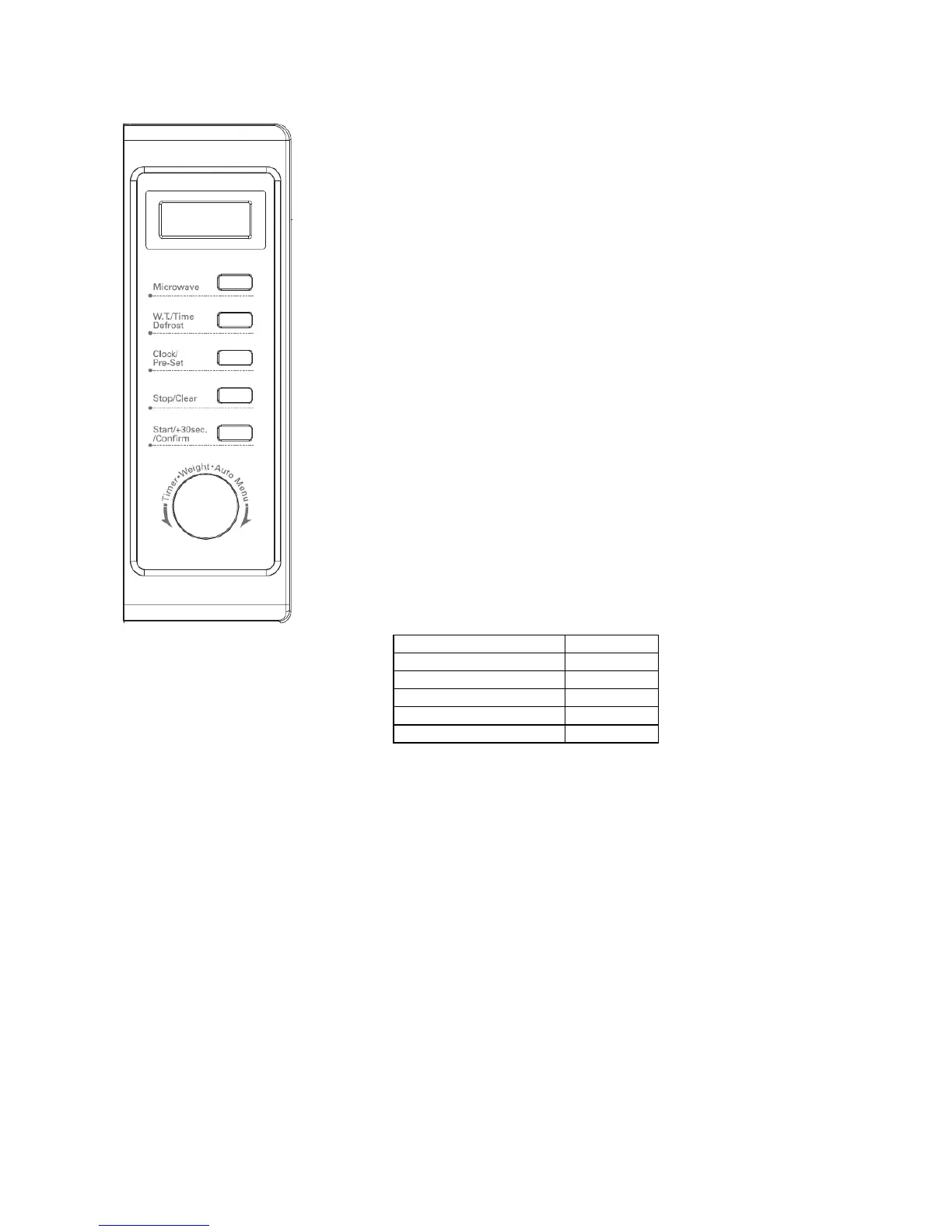 1. Press ‘START/+30SEC./CONFIRM’ button to cook with 100% power level for 30 seconds. Each press of