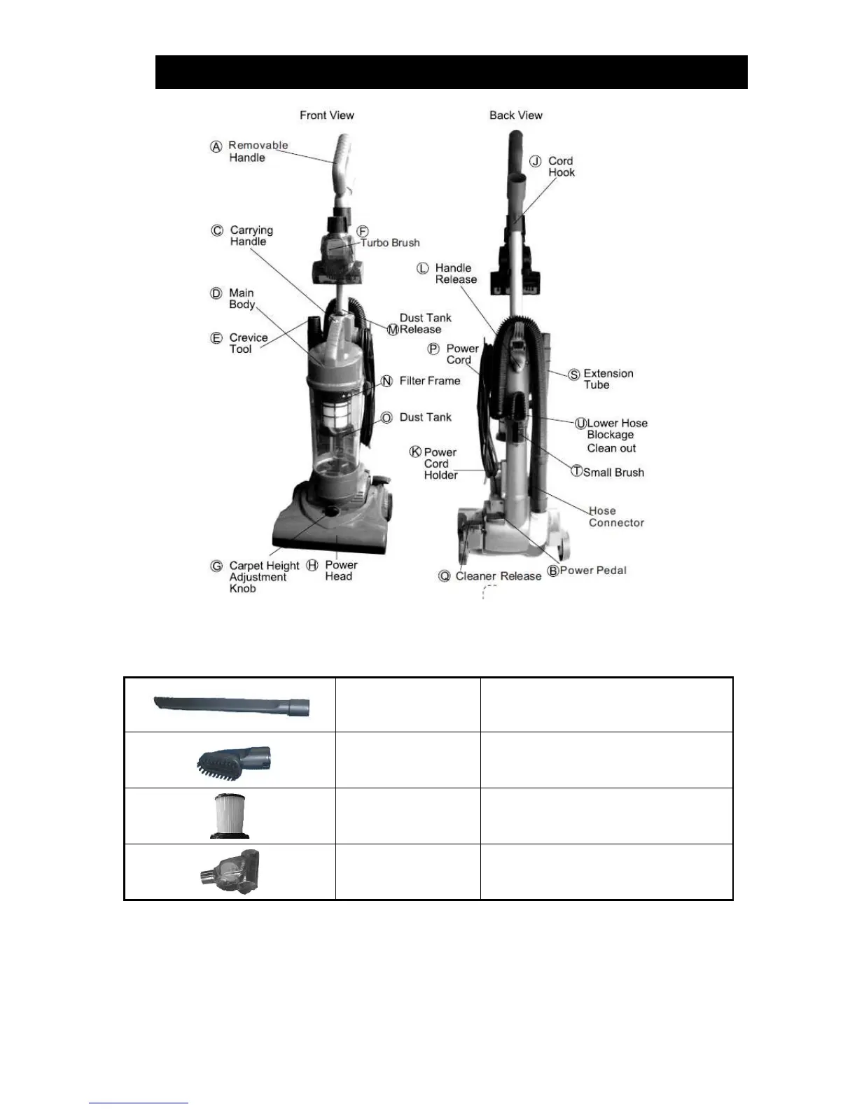 Please Note: The Turbo Brush (F) is an optional accessory and must be purchased separately.