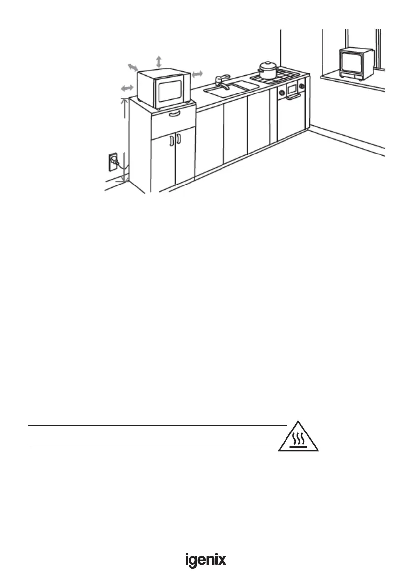 Leave a minimum clearance of 30cm above the microwave oven, a minimum clearance of 20cm