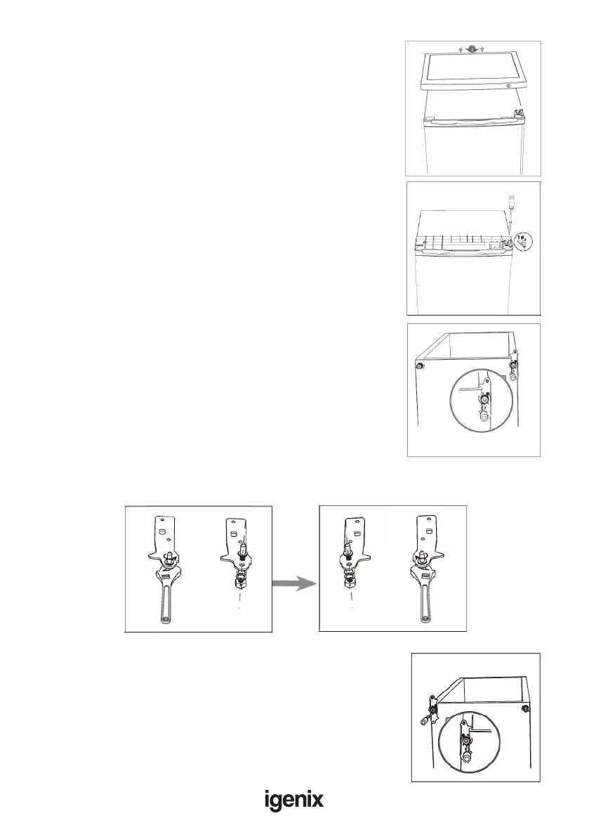 5. Unscrew and remove the bottom hinge pin, turn the bracket over and replace it.