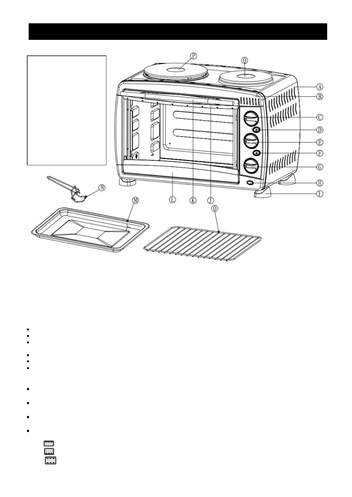 Roast Both the upper & lower heating elements work together. Suitable for roasting. (Both Switches D & F)