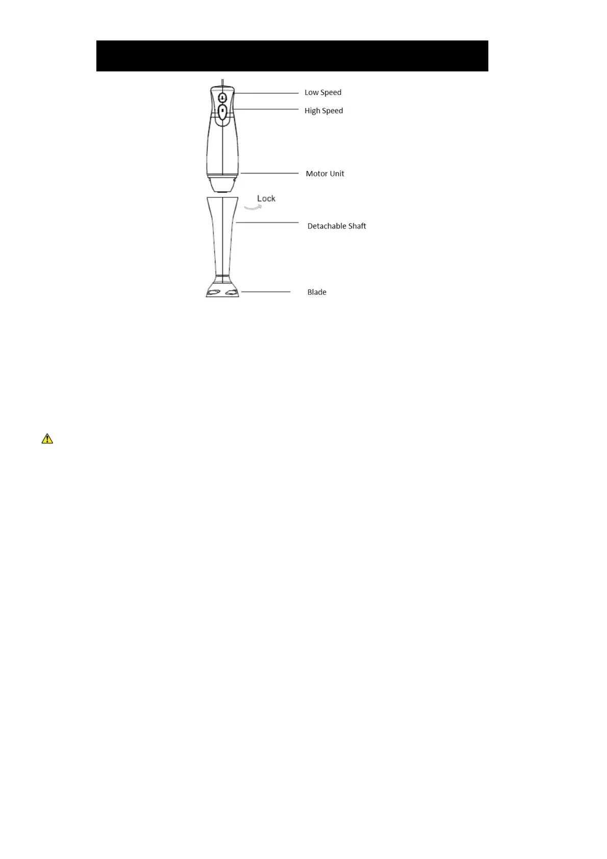 Important: The blades are extremely sharp, handle with care. Ensure that the hand blender is unplugged before