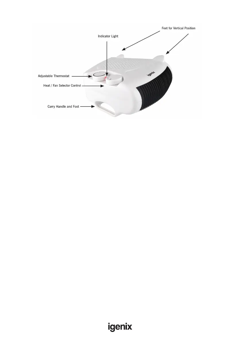 • Take out the heater from its box carefully. Please save the box to store the heater when not in use.