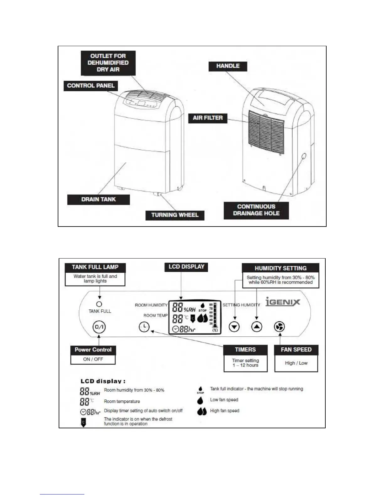 iGenix IG9800 - Dehumidifier at a Glance; Control Panel at a Glance