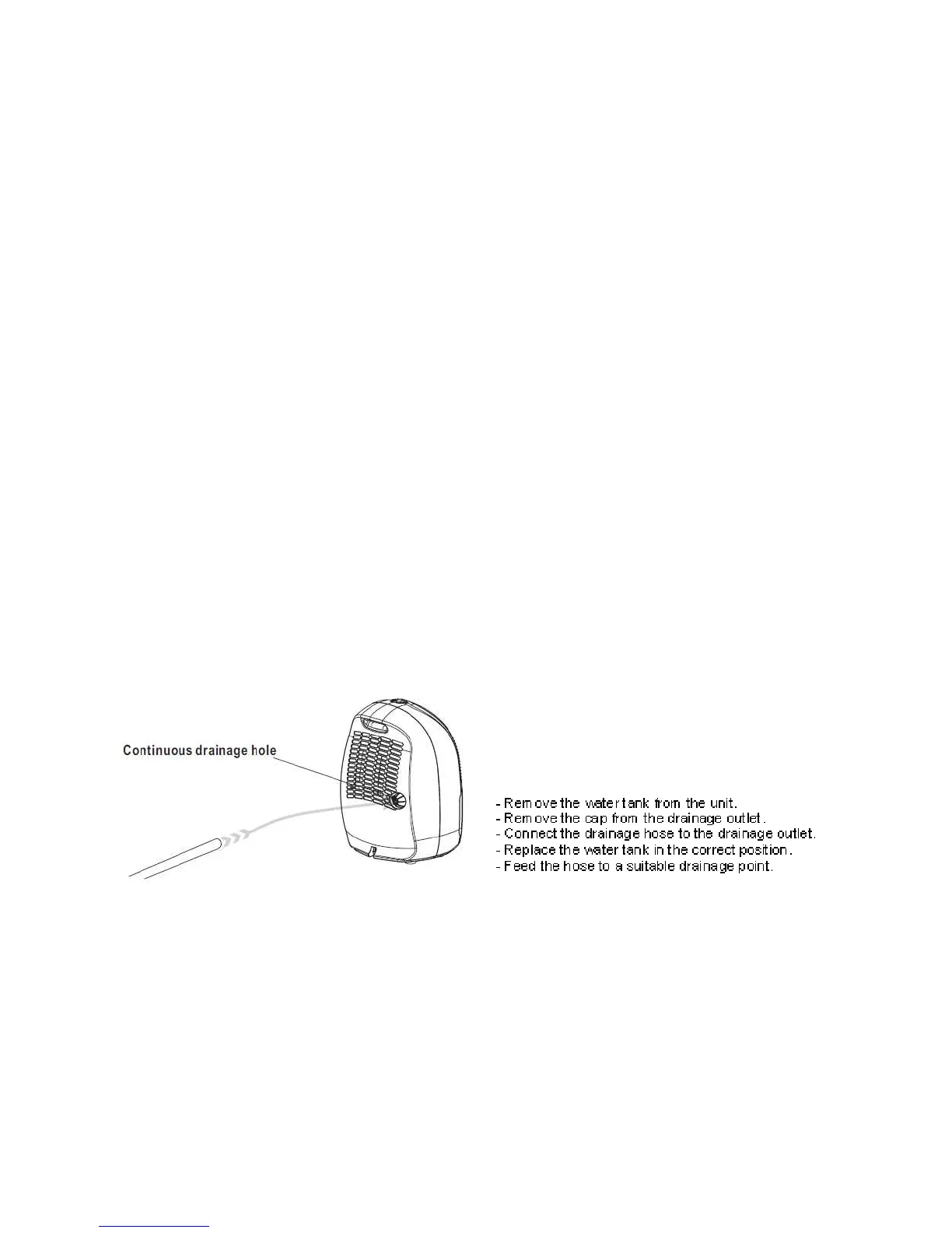 When using the continuous drainage feature the hose must be placed below the drainage outlet with no knots or