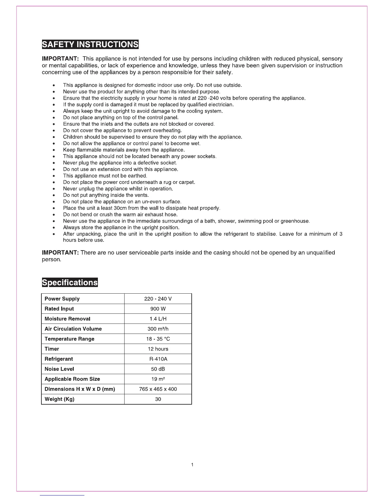 iGenix IG9900 - SAFETY INSTRUCTIONS; Specifications