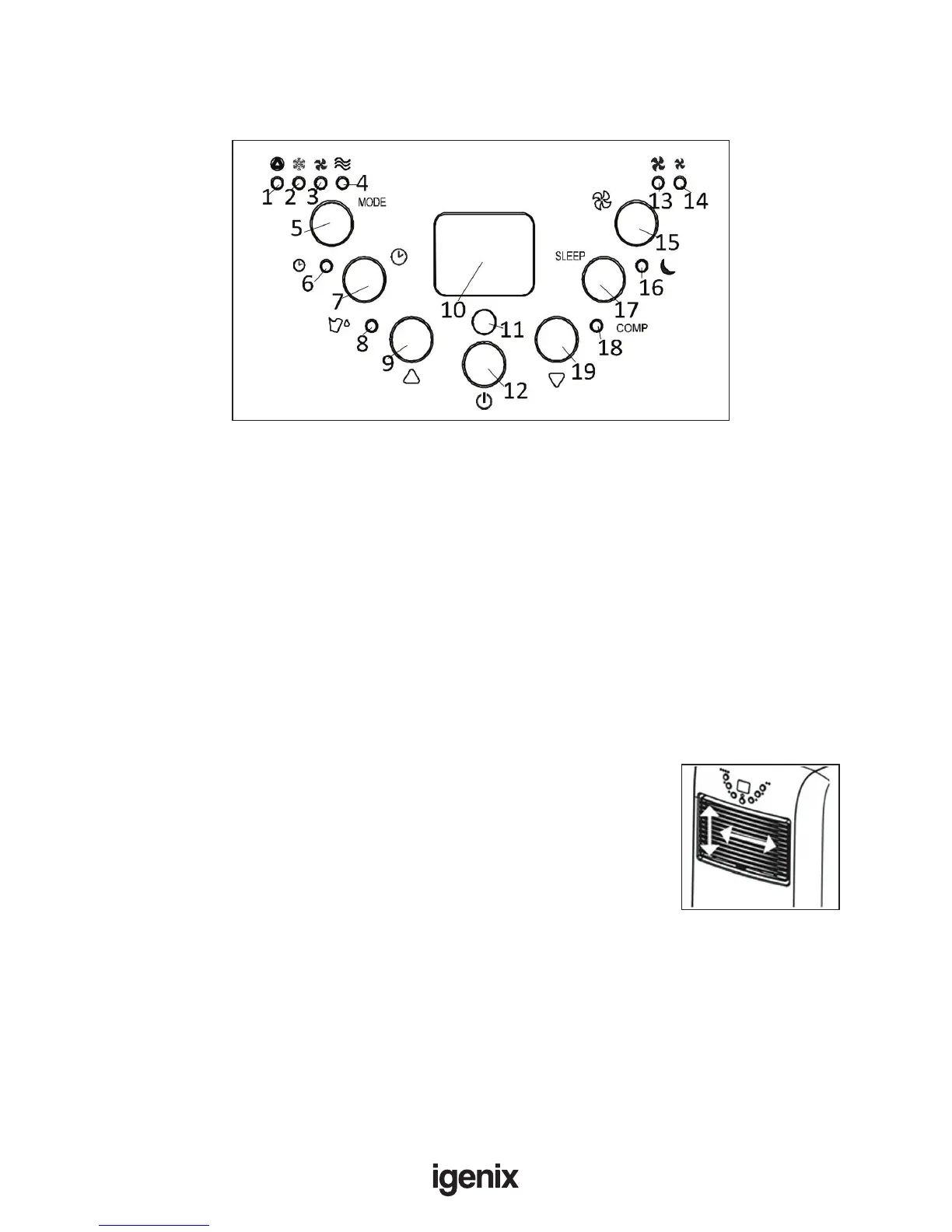 • Press the Mode button (Fig 13 [5]) to select required function: automatic, cooling or fan.
