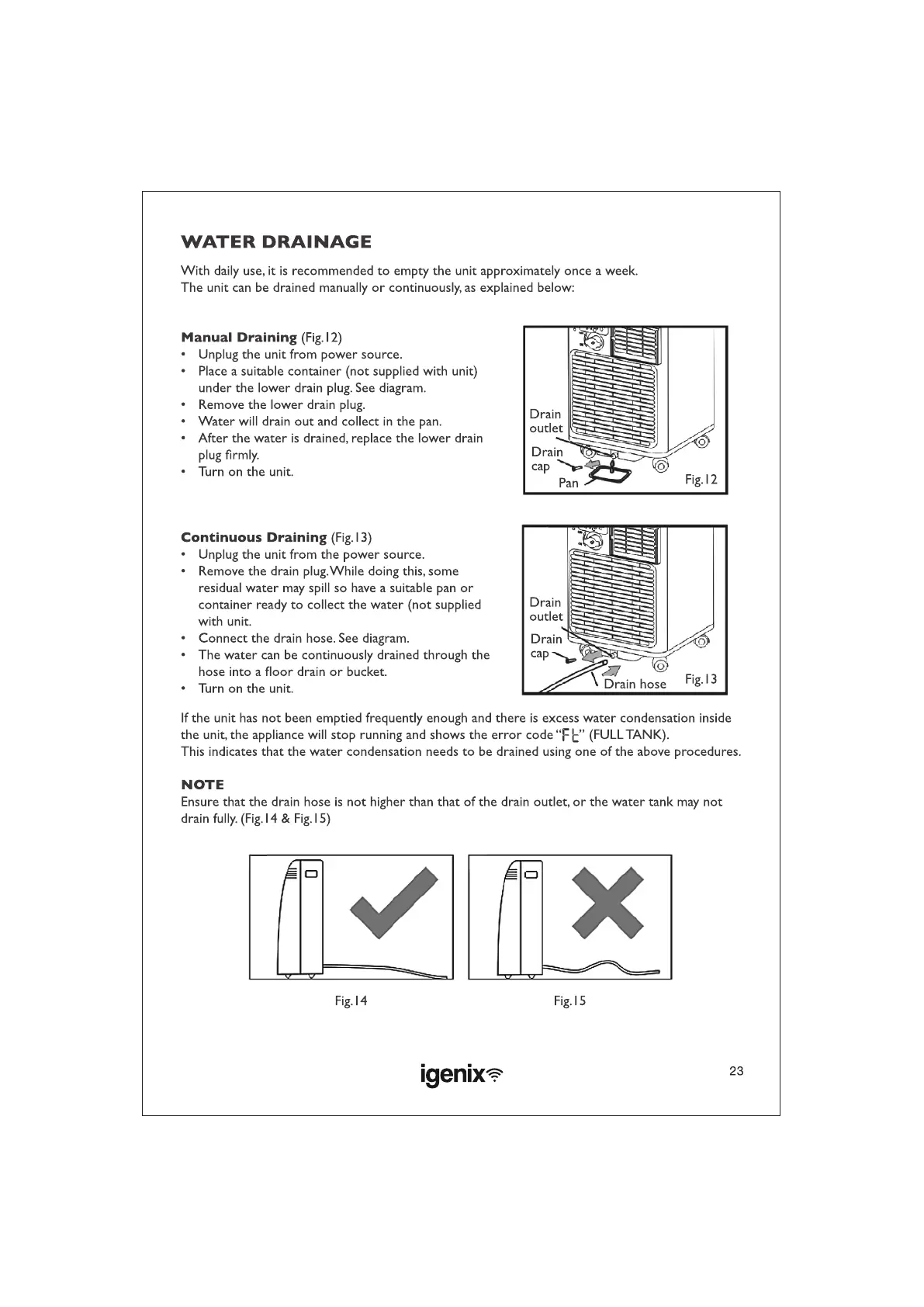 iGenix IG9909WIFI - Water Drainage Procedures; Manual Draining; Continuous Draining Setup