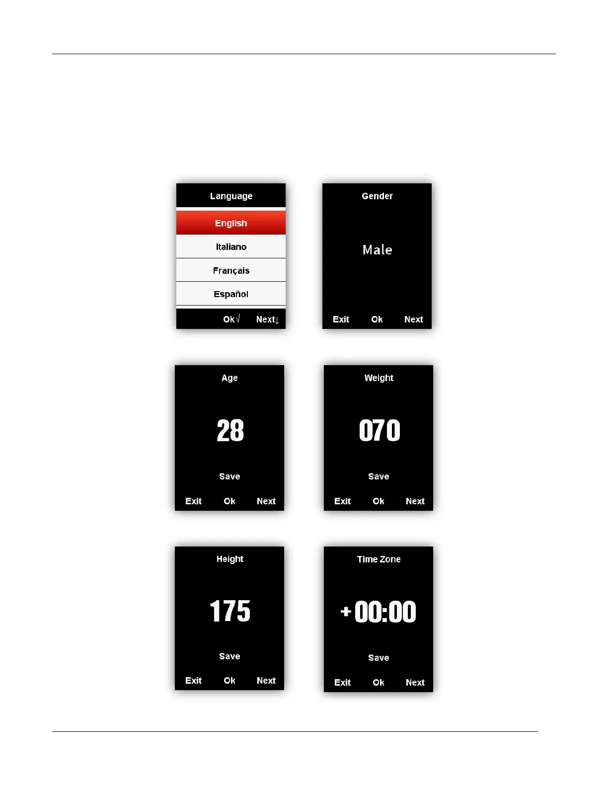 When using C250 for the first time, you can set the Language, Gender, Age, Weight, Height and