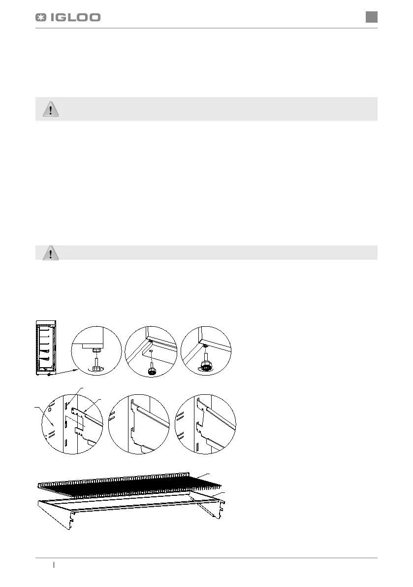• Place the display cabinet on an even basis, which is hard enough, and then level it with feet.