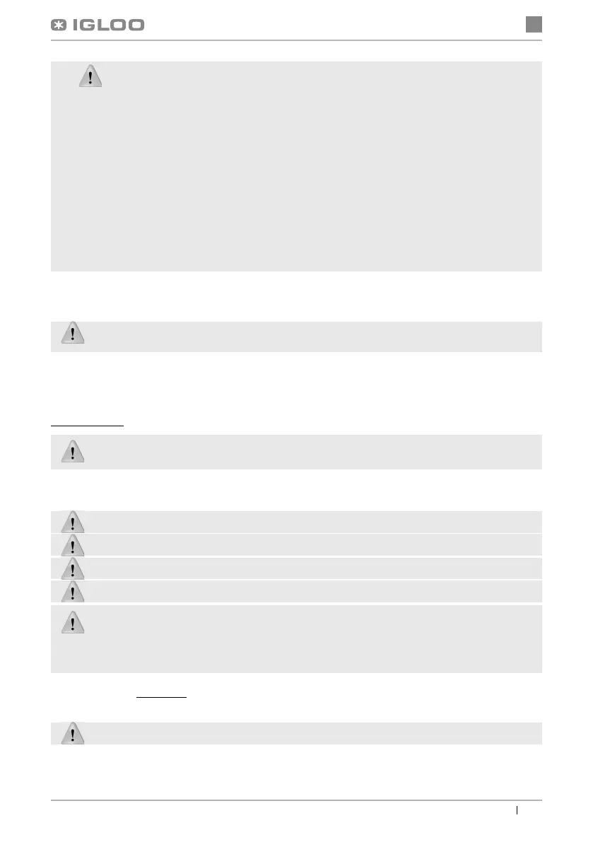 • Die erste Befüllung des Kühlungsraumes soll erst nach der Auskühlung bis zur Betriebstemperatur erfol-