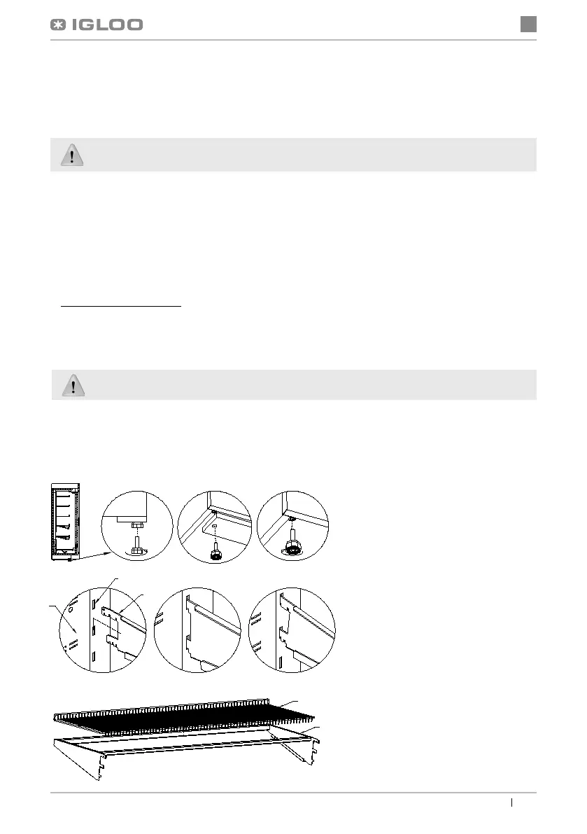 • Urządzenie ustawić na równym i dostatecznie twardym podłożu, a następnie wypoziomować je za pomocą