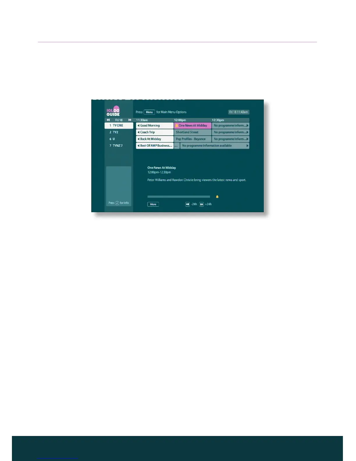 To watch the programme that is on now, and remove the TV guide, press OK.