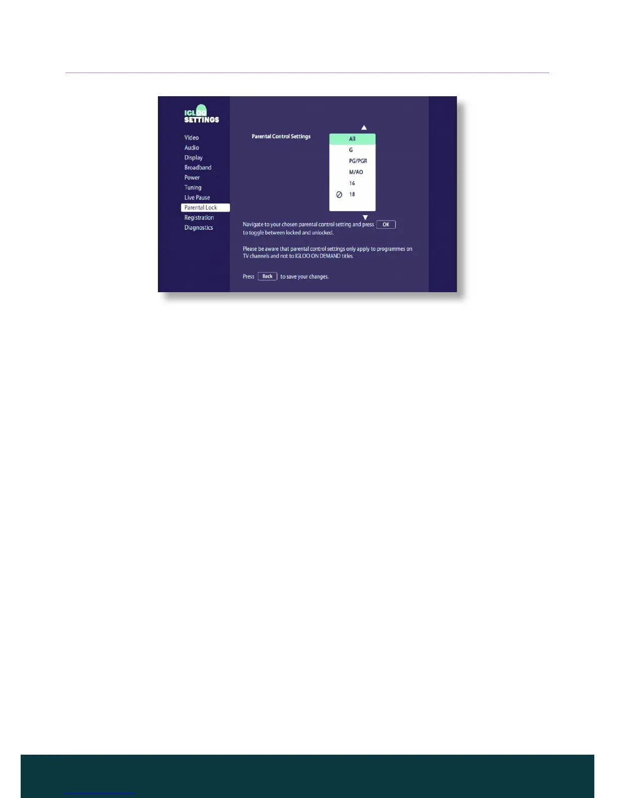 ◆ A message displays to confirm you have changed your parental control