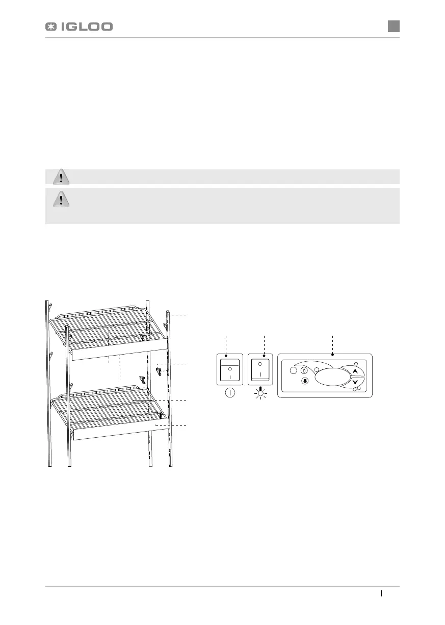 • Place the display cabinet on an even basis, which is hard enough, and then level it with feet Fig.1/4 (p.13)