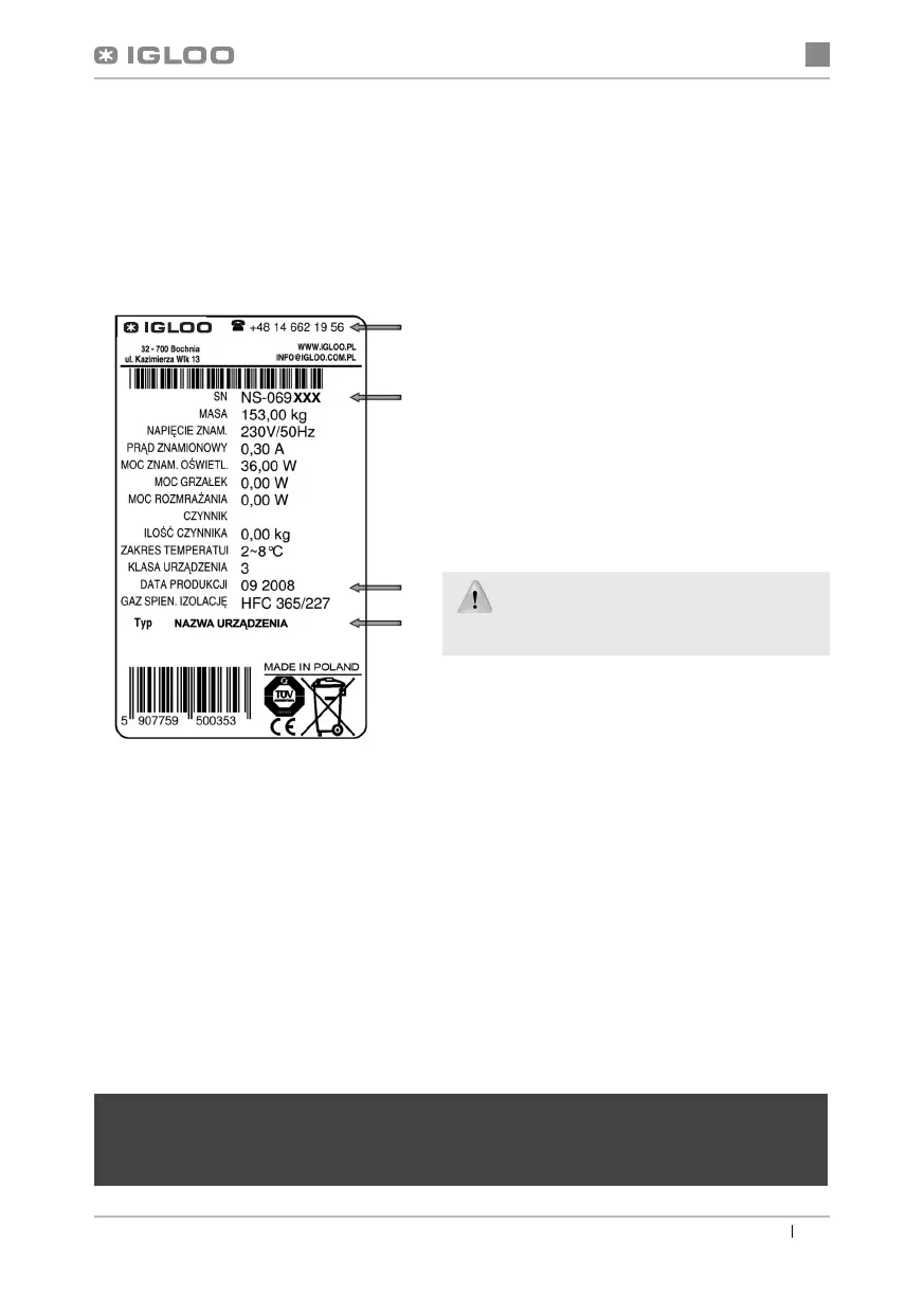 perly, please contact Technical Service of the Igloo company, stating the data from the data plate Fig.7 (p.15):