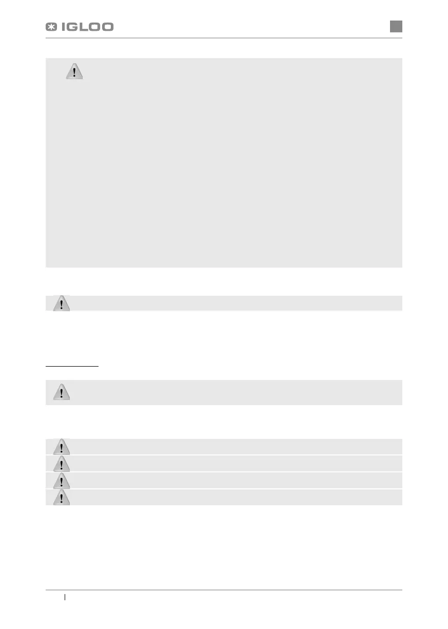 • Die erste Befüllung des Kühlungraumes soll erst nach der Auskühlung bis zur Betriebstemperatur erfolgen.