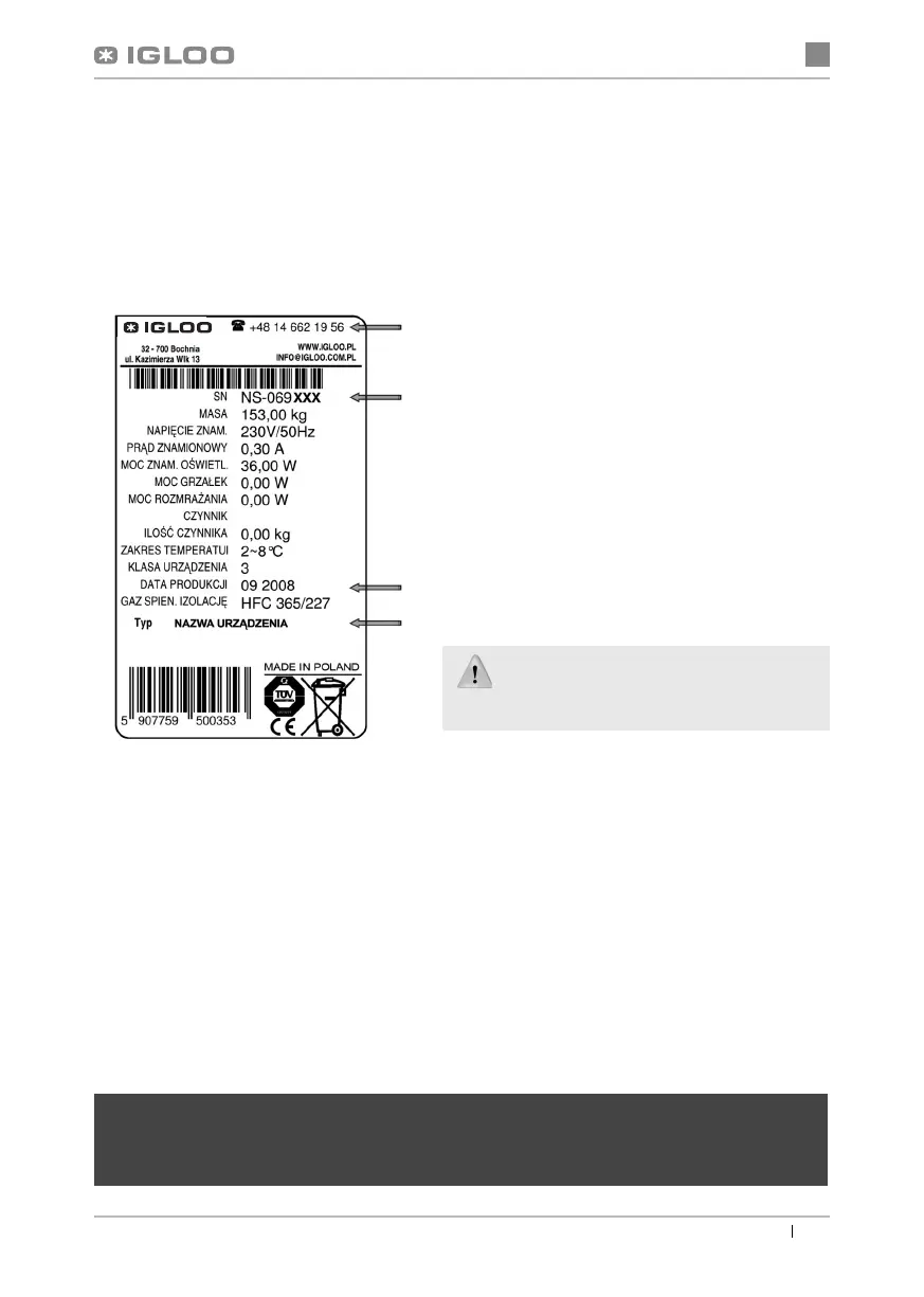 działa prawidłowo, należy skontaktować się z Serwisem Technicznym fi rmy Igloo, podając dane z tabliczki zna-