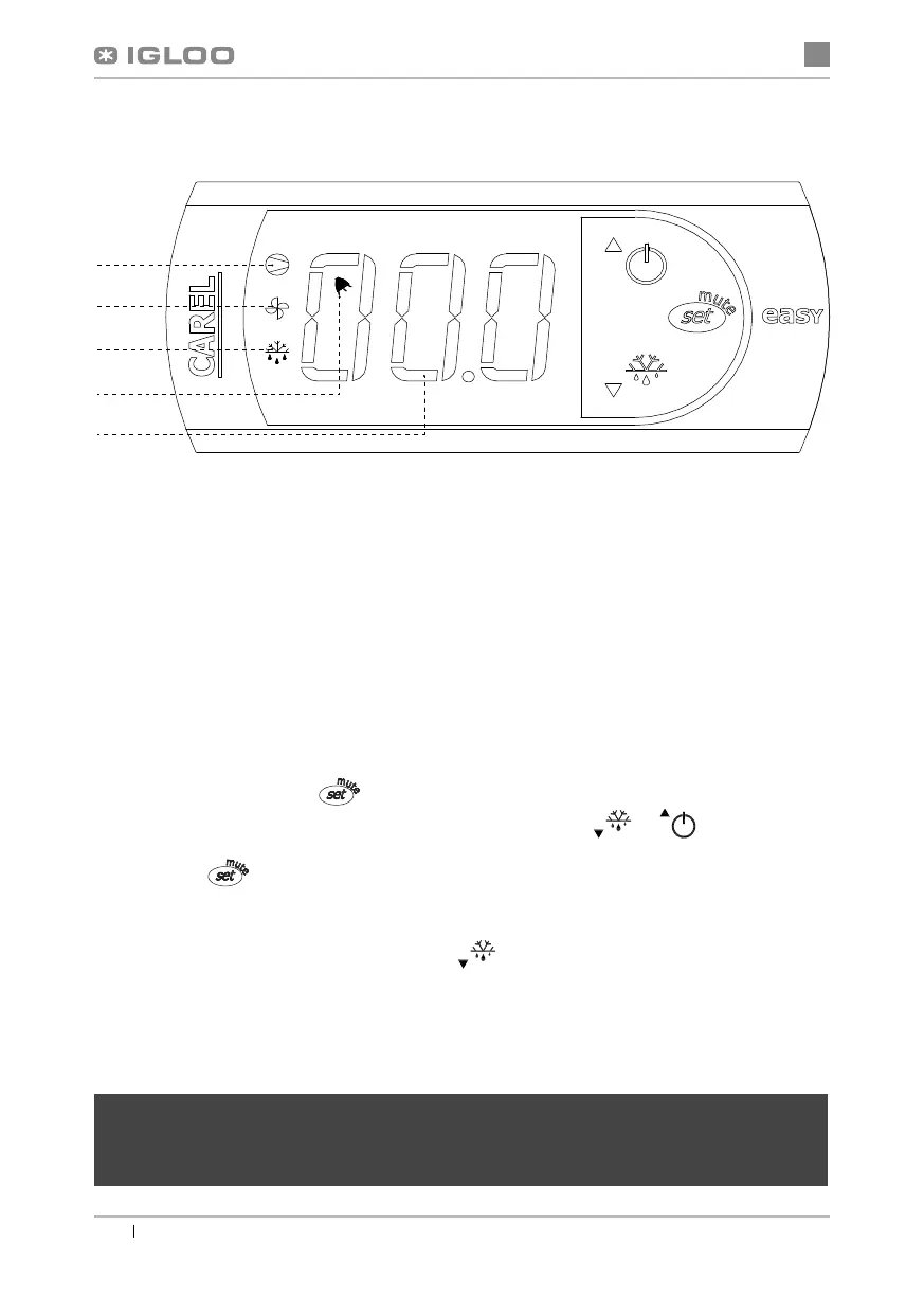 Светящийся диод 2 - Вентилятор: символ виден, когда включены вентиляторы испарителя. Мигает, когда старт