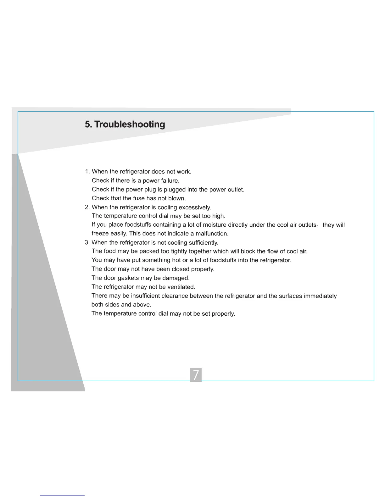 Igloo FR180 - Troubleshooting; Refrigerator Not Working; Insufficient Cooling