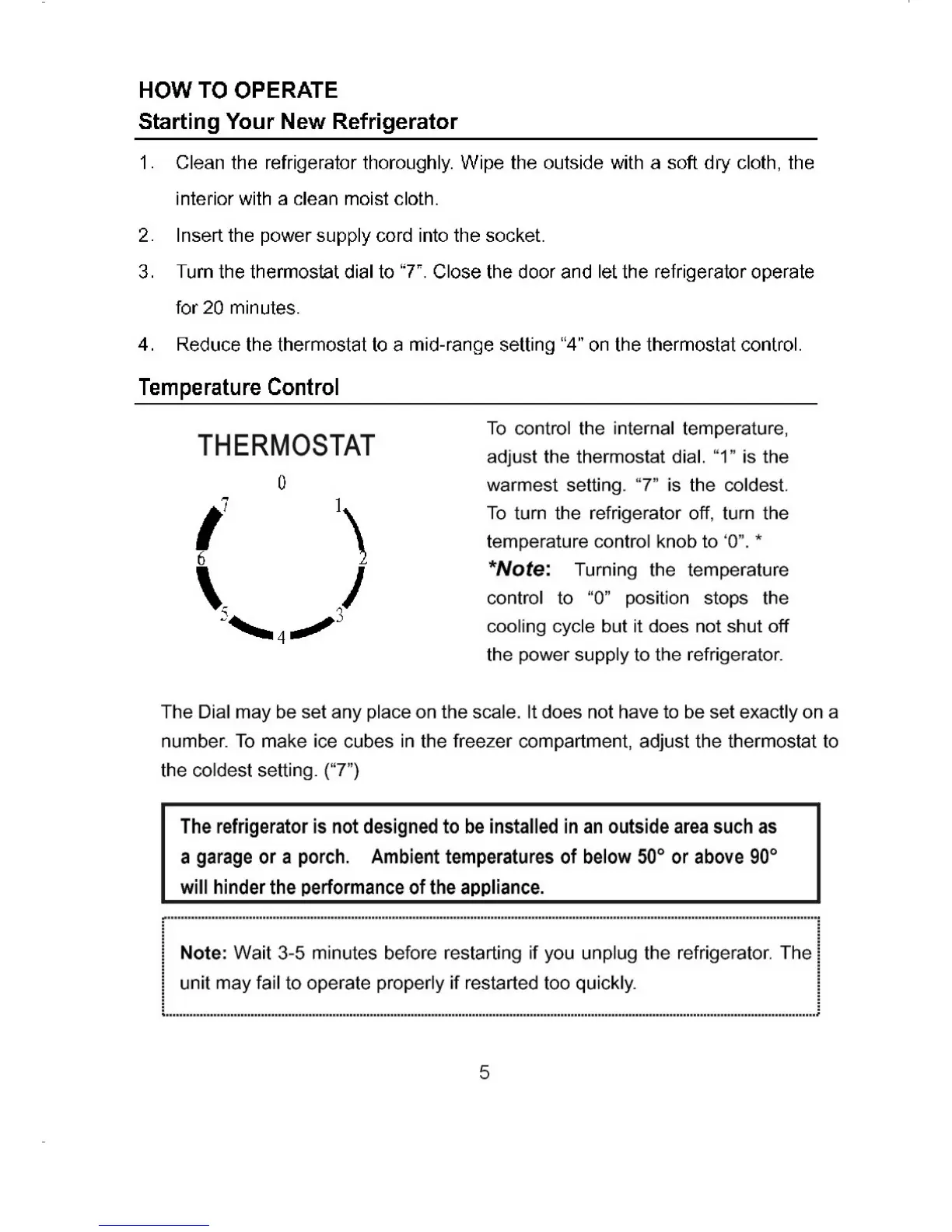 Igloo FR320 - How To Operate; Starting Your New Refrigerator; Temperature Control