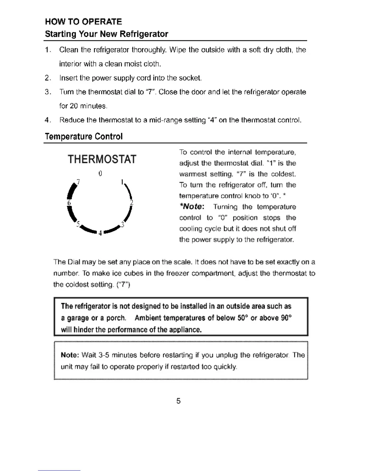 Igloo FR322 - How To Operate; Starting Your New Refrigerator; Temperature Control