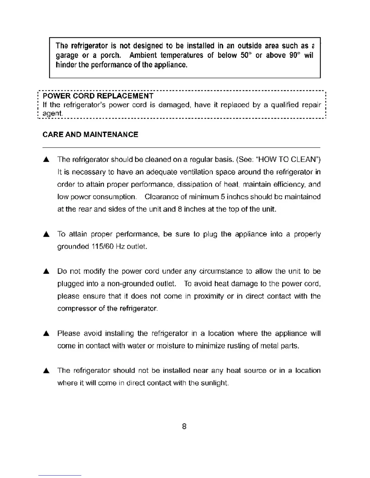 Igloo FR322 - Power Cord Replacement; Care And Maintenance